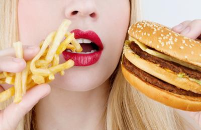 ponsel; makan terlalu banyak daging dan makan ke restoran.